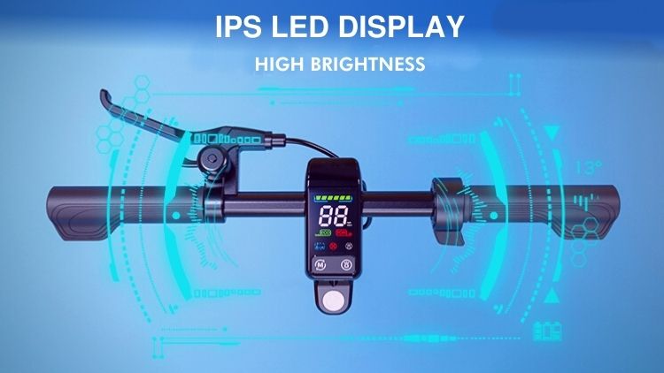 Dotado de doble foco led delantero de 3W de potencia, luz trasera LED COB resistene al agua de alta potencia llumínica con indicación de frenada, un potente freno de tambor (superior a freno de disco mecánico), y freno electrónico. Y un sistema de plegado que no ofrece ningún tipo de vibraciones.